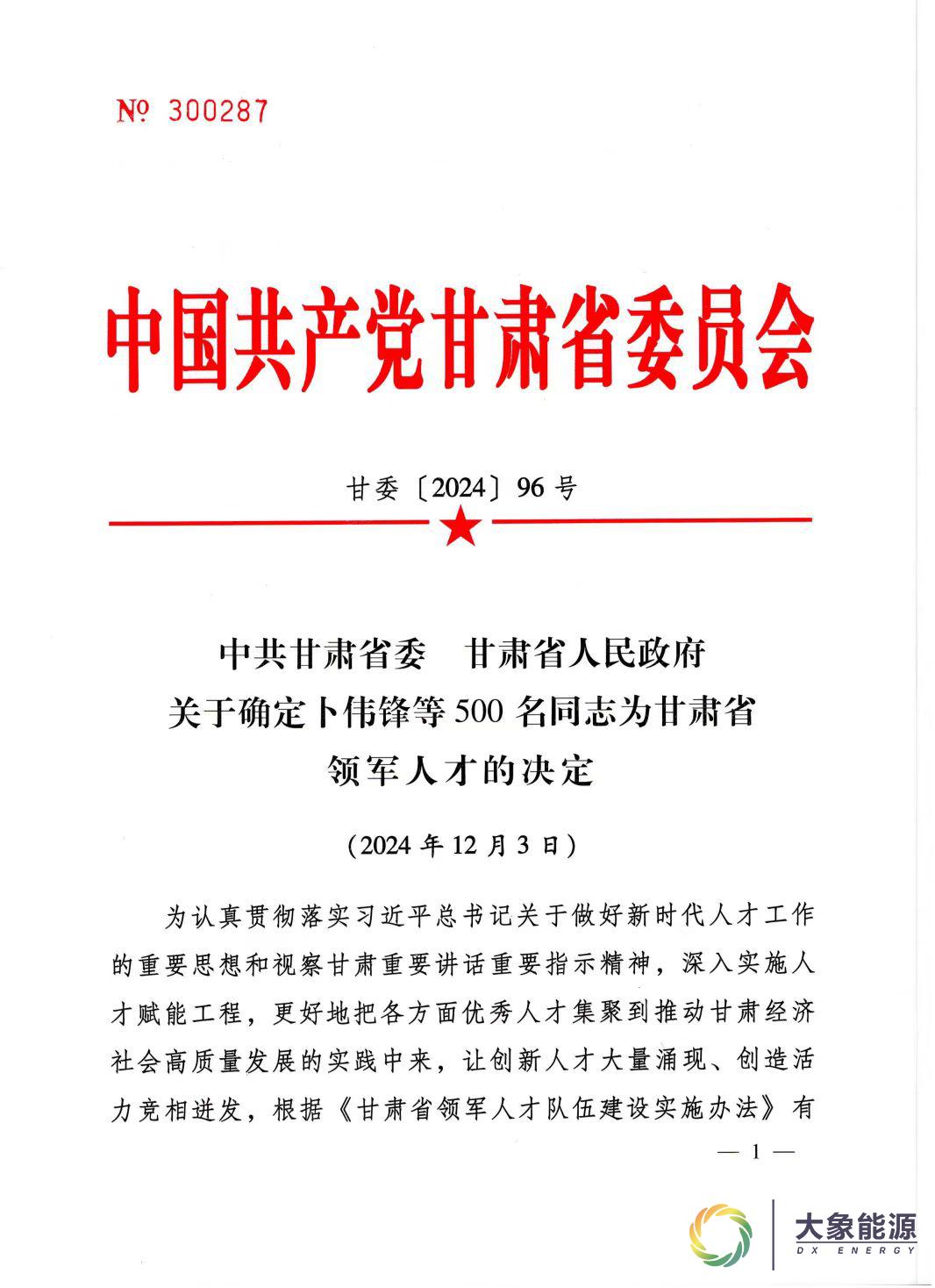 热烈祝贺白银时代瑞象新材料科技有限公司副总经理田勇先生,在甘肃省领军人才计划评选中凭借其专业素养和杰出的工作业绩,脱颖而出,并荣获"甘肃省第二批领军人才"荣誉称号。