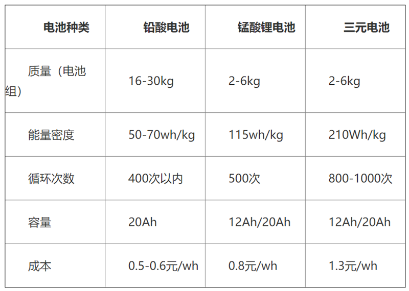 <p>&nbsp;&nbsp;&nbsp;&nbsp;&nbsp;&nbsp;&nbsp; 可以看到，新国标对于未来电动自行车的要求方向主要以“轻便化”、“安全化”为主。对此，行业内关于未来锂电池在电动自行车中替代铅酸电池的呼声很高，而其中，又属锰酸锂电池与三元电池的支持者更多。SMM总结了铅酸电池与锰酸锂电池、三元电池之间的差异。