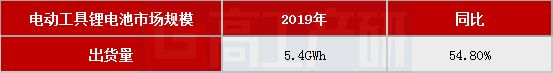 高工产研锂电研究所(GGII)数据显示,2019年国内电动工具锂电池出货量为5.4GWh,同比增长54.8%。