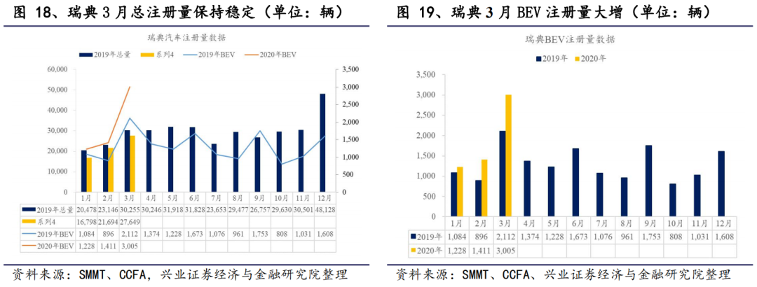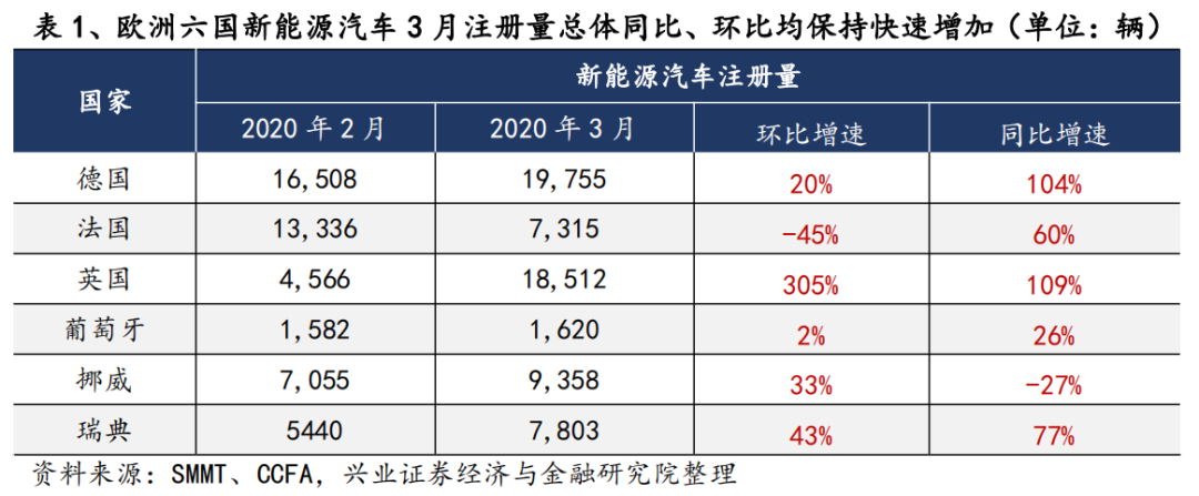 &nbsp;&nbsp;&nbsp;&nbsp;&nbsp;&nbsp;&nbsp; 我们追踪了德国、法国、英国、葡萄牙、挪威、瑞典，2017-2019年六个国家新能源汽车占欧洲比例72%，所以在已经披露的六个国家新能源汽车数据可以很大程度反应3月份欧洲整体的发展情况。 <br>