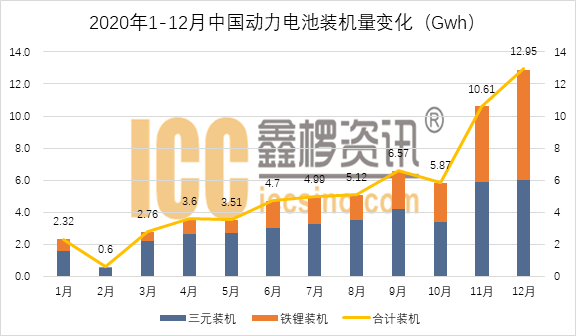 动力电池|12月国内动力电池装车量为63.6Gwh 同比增长2.3%