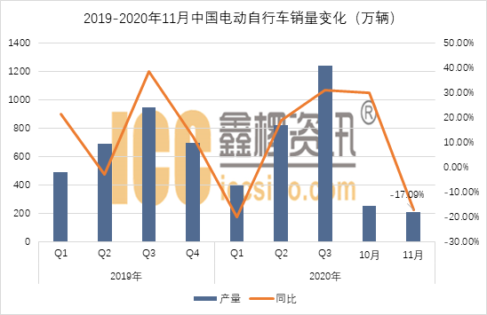 小动力|前11月中国电动自行车产量2762.0万辆同比增长34.1%
