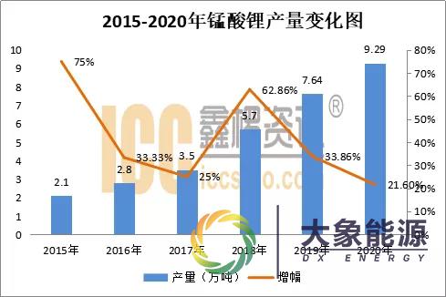 据ICC鑫椤资讯统计国内25家锰酸锂企业数据显示,虽然2020年上半年受疫情影响,低端数码电池及海外出口需求降低,但在2020年开始爆发的电动两轮车电池需求增加对锰酸锂市场形成支撑,全国锰酸锂产量达到9.29万吨,同比增长21.6%。