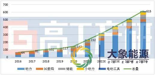 从具体应用领域来看,新能源汽车、3C数码领域、储能、小动力和电动工具是锂电池主要下游应用市场。