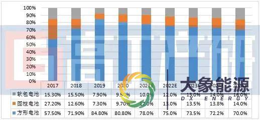 备注:圆柱电池占比涵盖LG、松下动力电池出货;