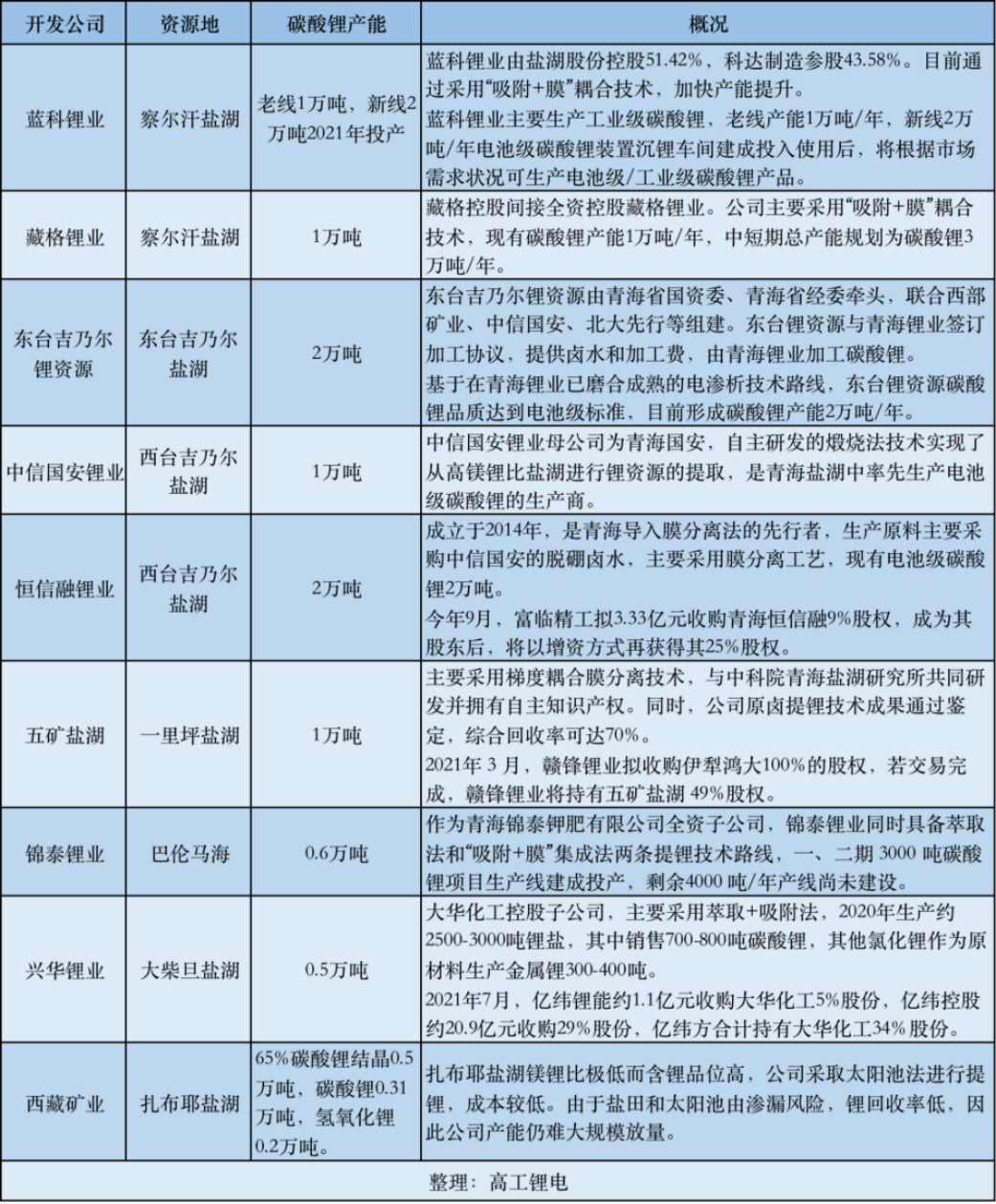 从国内盐湖提锂市场情况看，由于高原地区的生产环境恶劣、提取技术水平要求高、前期投入成本高，国内布局盐湖提锂规模化企业主要集中在蓝科锂业、藏格控股、东台吉乃尔锂资源/青海锂业、恒信融锂业、五矿盐湖、锦泰锂业、兴华锂业、西藏矿业等少数企业布局。