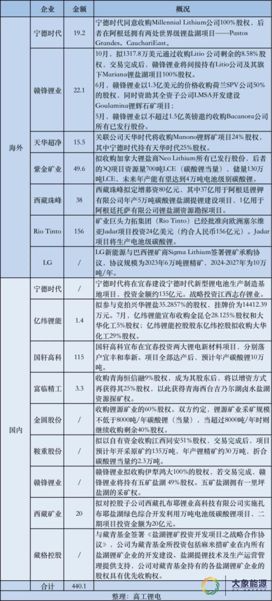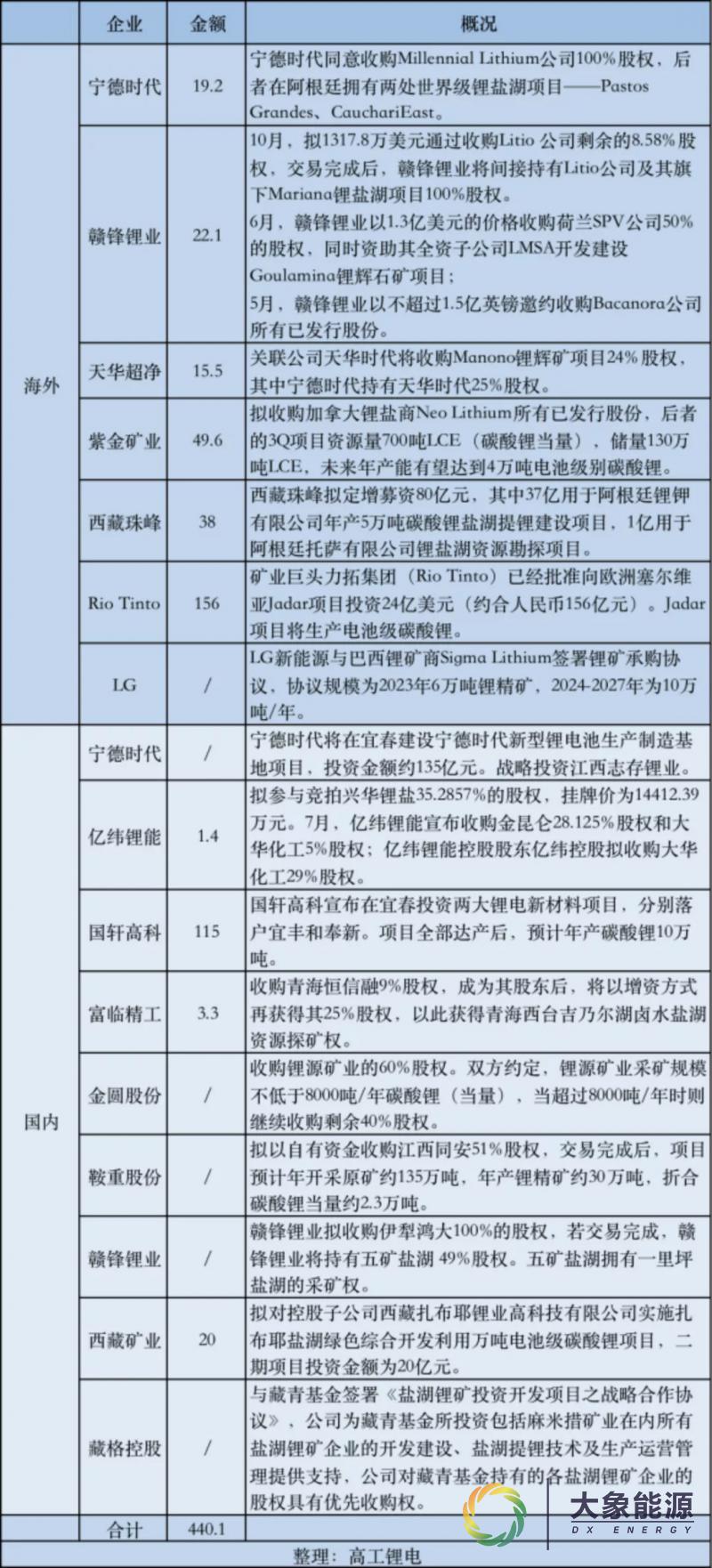 据高工锂电不完全统计,今年国内外与锂矿争夺与开发的项目达到16个,涉及金额超过440亿元。其中,与海外矿产资源相关的项目7个,国内锂矿资源相关的项目9个。