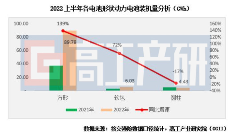 但从装机量的上升趋势角度来看,软包电池的增速则十分迅猛。高工产业研究院(GGII)发布的《动力电池装机量月度数据库》显示,今年上半年,软包动力电池装机量约6.03GWh,同比增速高达72%。