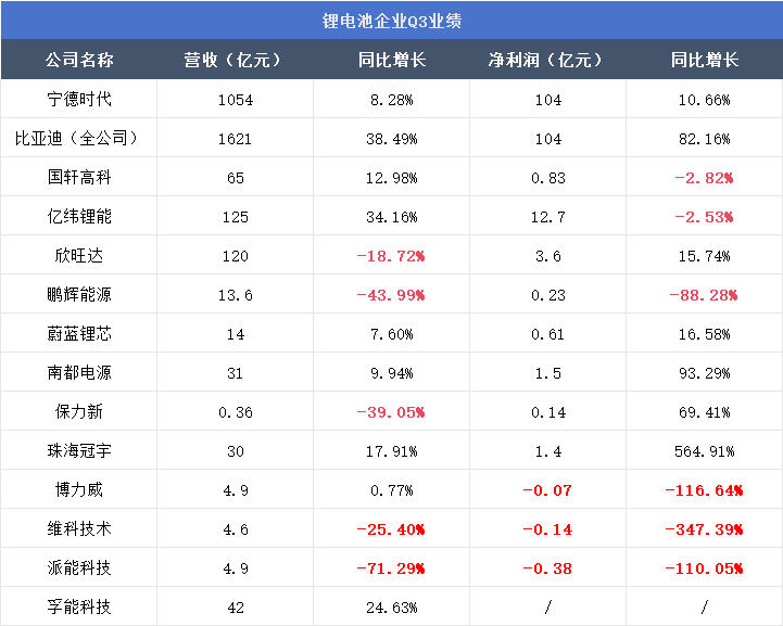 随着各大锂电池上市公司的Q3业绩出炉,隐约可见锂电产业调整期已经迈入深水。