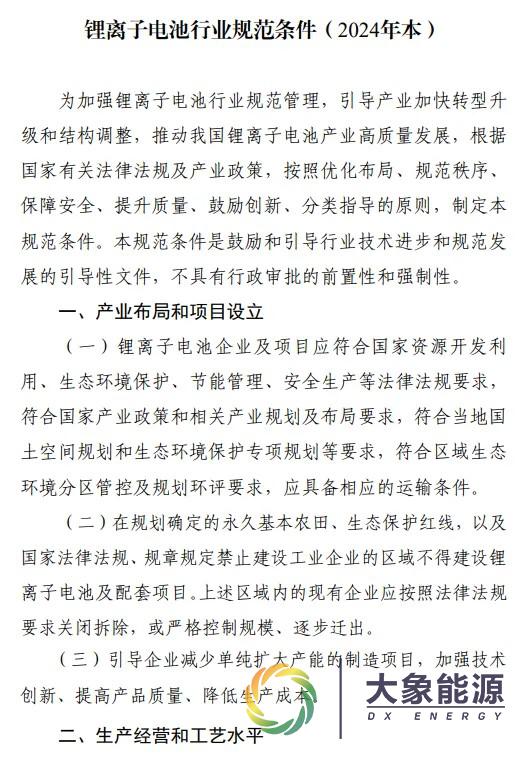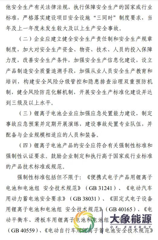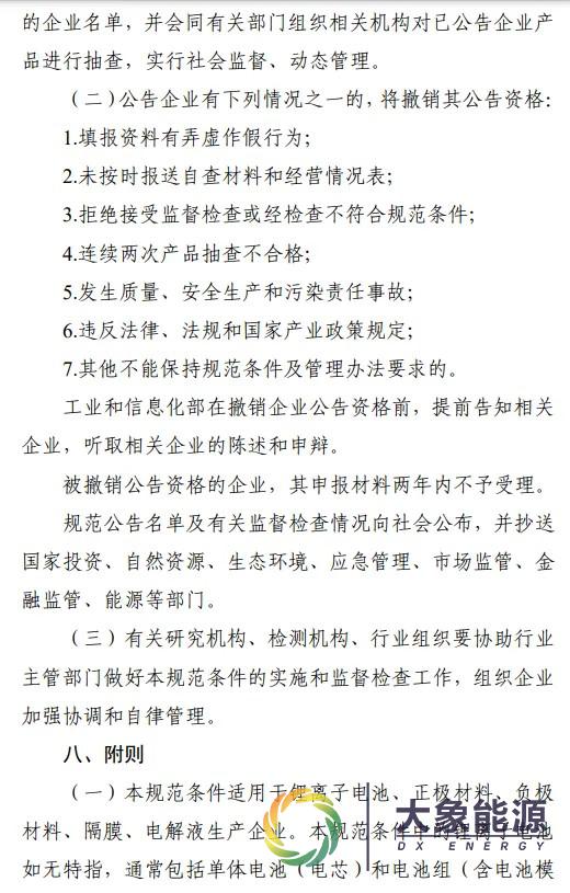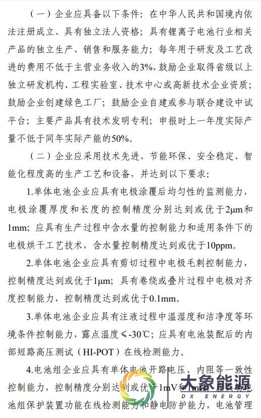 新版《锂离子电池行业规范条件》明确: