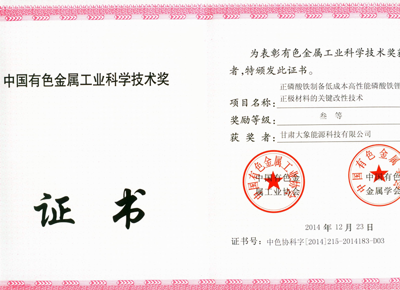 中国有色金属工业科学技术三等奖