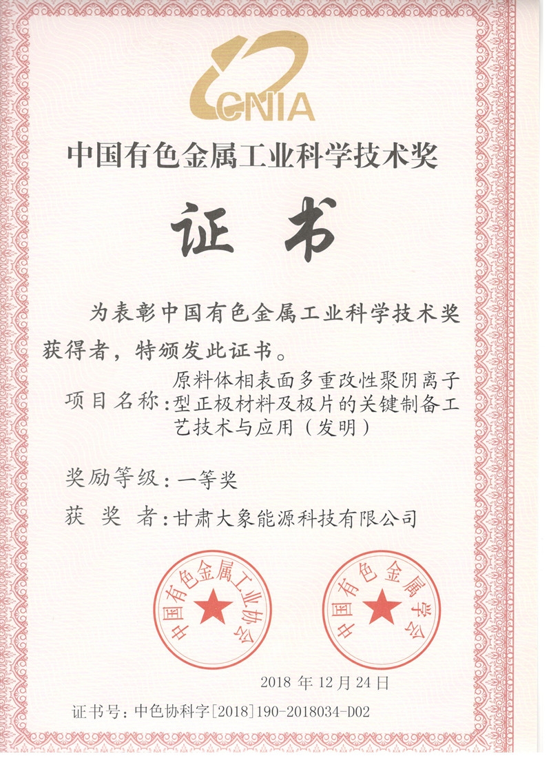 中国有色金属工业科学技术一等奖