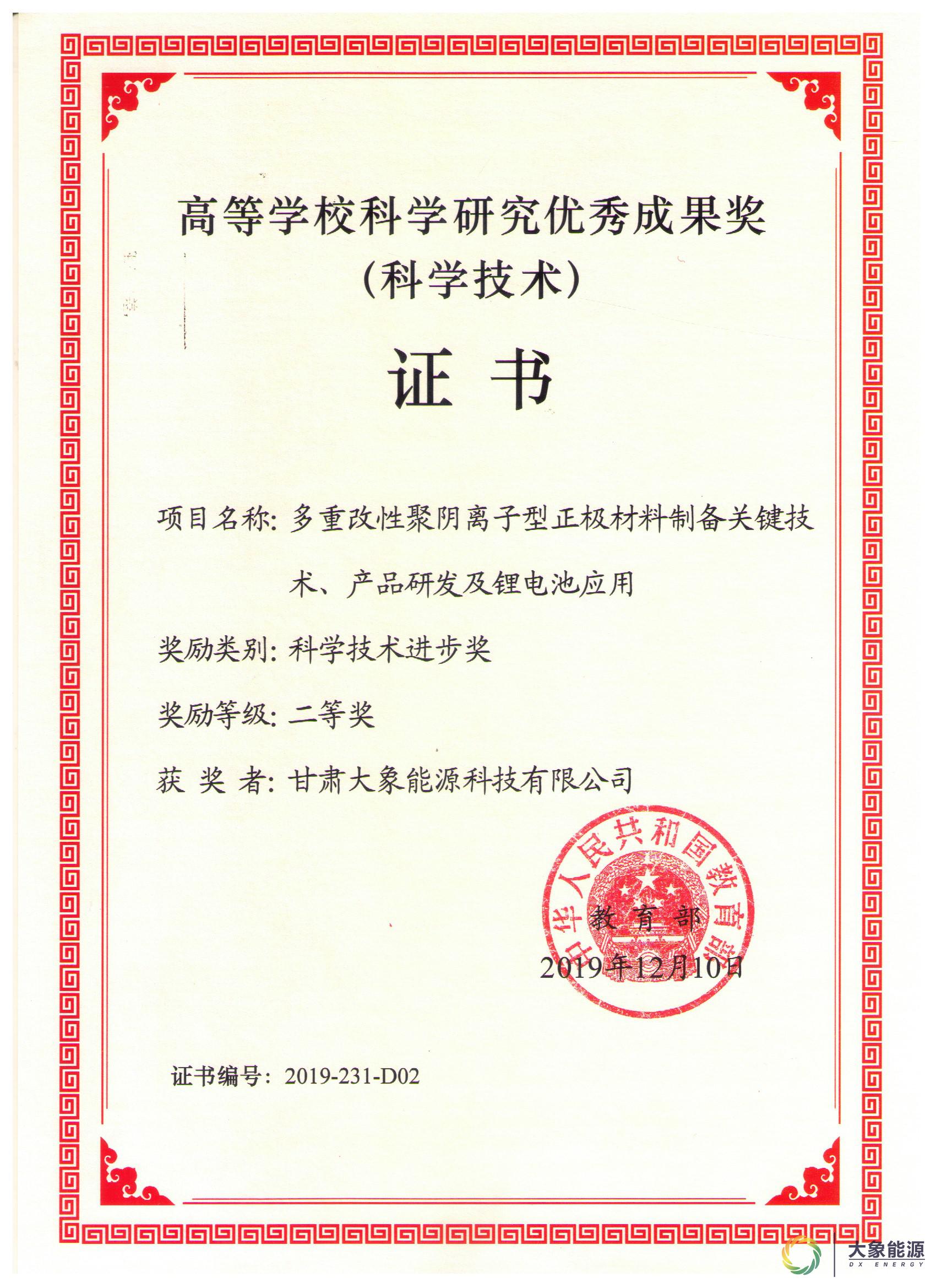 教育部科学技术进步二等奖