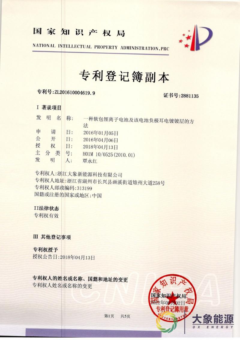 一种软包锂离子电池及该电池负极耳电镀镀层的方法